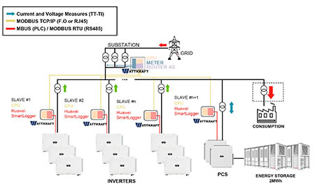 La solución ZI 2.0 de Wattkraft, está preparado para integrarse en instalaciones con esquemas de redes eléctricas multinivel con equipos Huawei FusionSolar y resuelve uno de los desafíos más críticos para estas instalaciones: evitar el vertido de energía a la red, conforme a los rigurosos estándares legales actuales que demandan tiempos de reacción ante cambios de generación o consumo inferiores a los 2 segundos.